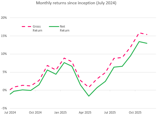 Between February and May 2025, the higher-risk portfolio lost almost 15 percentage points in value and has since added 20 percentage points in value. Over the same period the medium-risk portfolio lost only 8 percentage points and has since added 13.